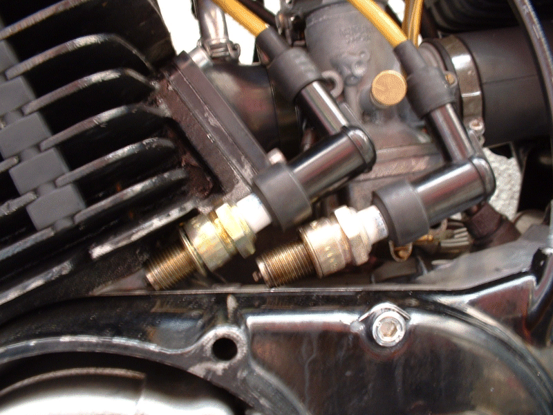 mm vor O.T. (RD250 2,0 mm) eingestellt, siehe auch weiter unten. Hiernach Treibstofftank aufgesetzt und alle Motordeckel