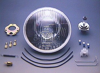 Die aufwändigere Methode ist, den kompletten Scheinwerfereinsatz gegen einen Standard-H4-tauglichen zu tauschen. Bei diesem ist der Reflektor und die Glas-Streuscheibe genau auf die andere Glühwendelgrösse und -position abgestimmt. Vorteil bei der Verwendung dieses Austausch-Scheinwerfereinsatzes ist, man kann nun handelsübliche H4-Lampen einsetzen. Mittlerweise bietet der Markt verbessserte H4-Lampen mit verstärkter Lichtabgabe und geänderter Lichtfarbe an. |