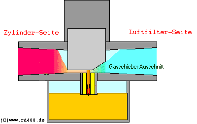 Gasschieber-Ausschnitt immer in Richtung Luftfilter! |